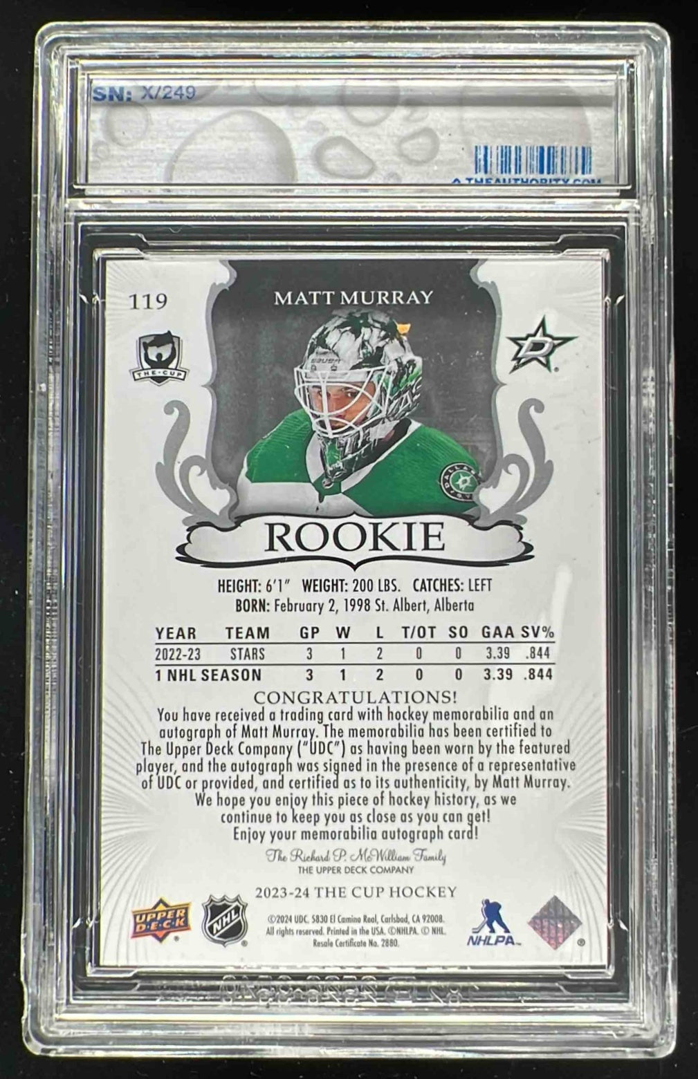2023-24 The Cup #119 Matt Murray Rookie Patch Auto Autograph Auto /249