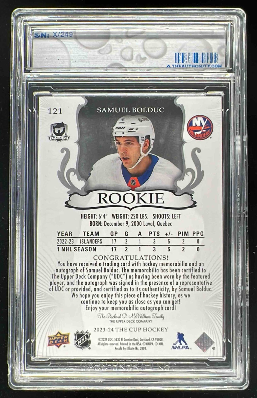 2023-24 The Cup #121 Samuel Bolduc Rookie Patch Auto Autograph Auto /249