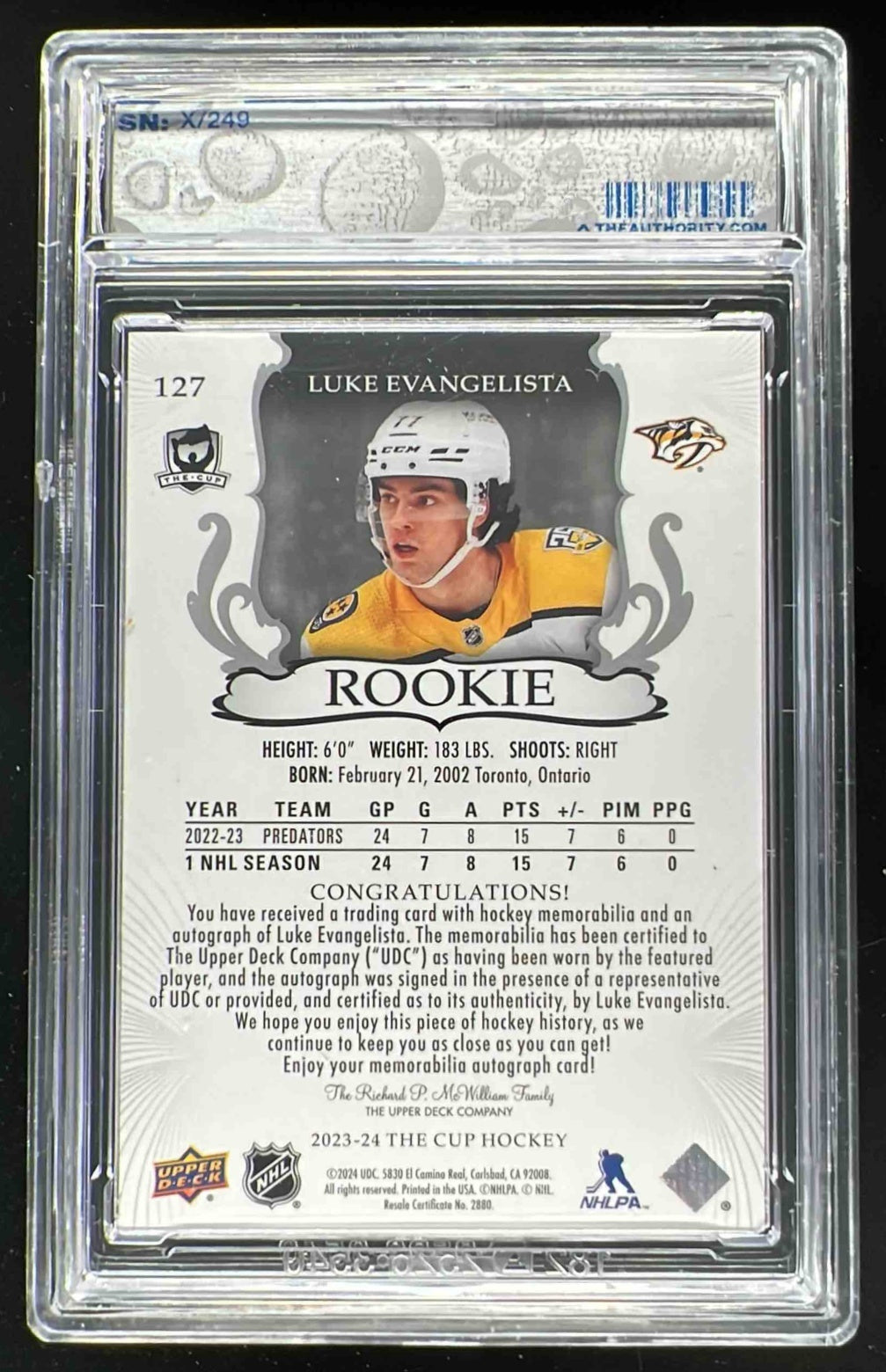 2023-24 The Cup #127 Luke Evangelista Rookie Patch Auto Autograph Auto /249