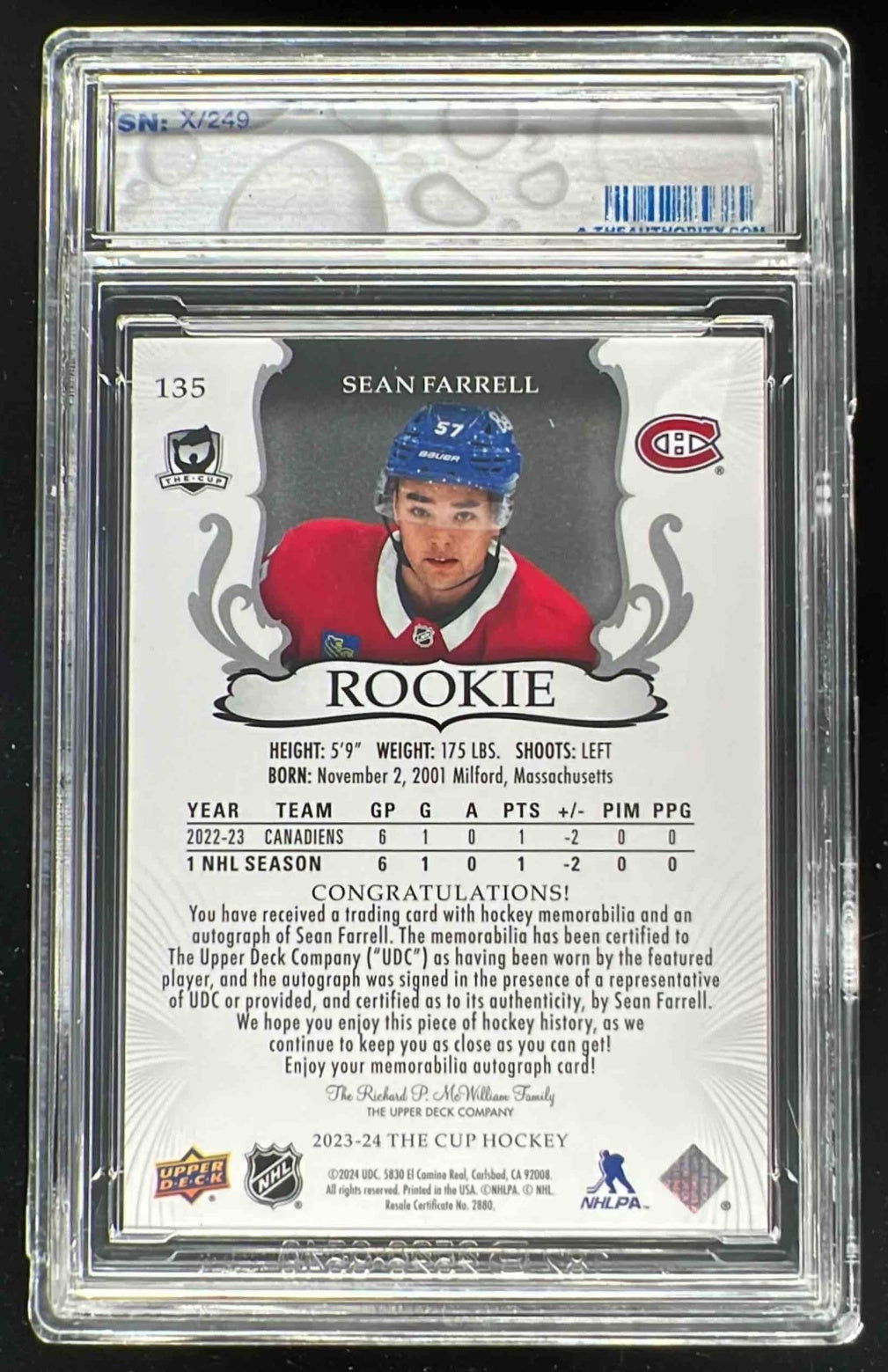 2023-24 The Cup #135 Sean Farrell Rookie Patch Auto Autograph Auto /249