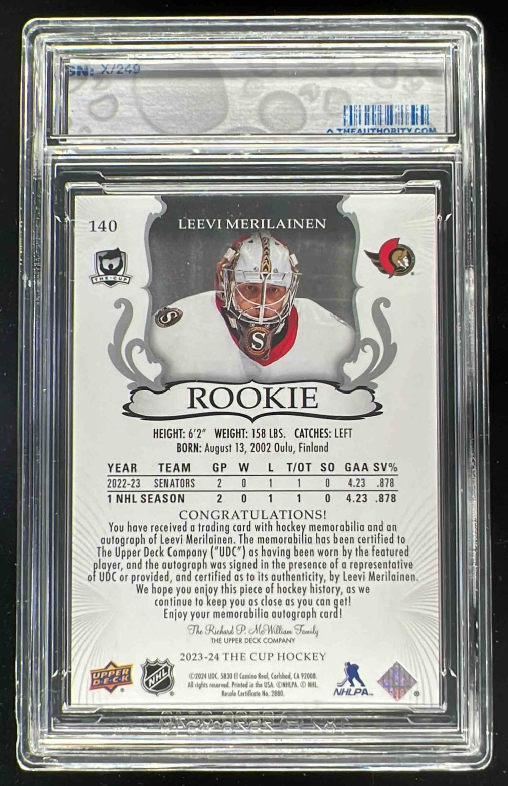 2023-24 The Cup #140 Leevi Merilainen Rookie Patch Auto Autograph Auto /249