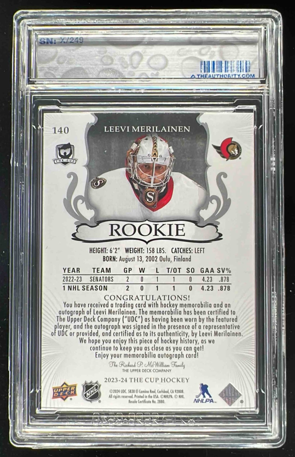 2023-24 The Cup #140 Leevi Merilainen Rookie Patch Auto Autograph Auto /249