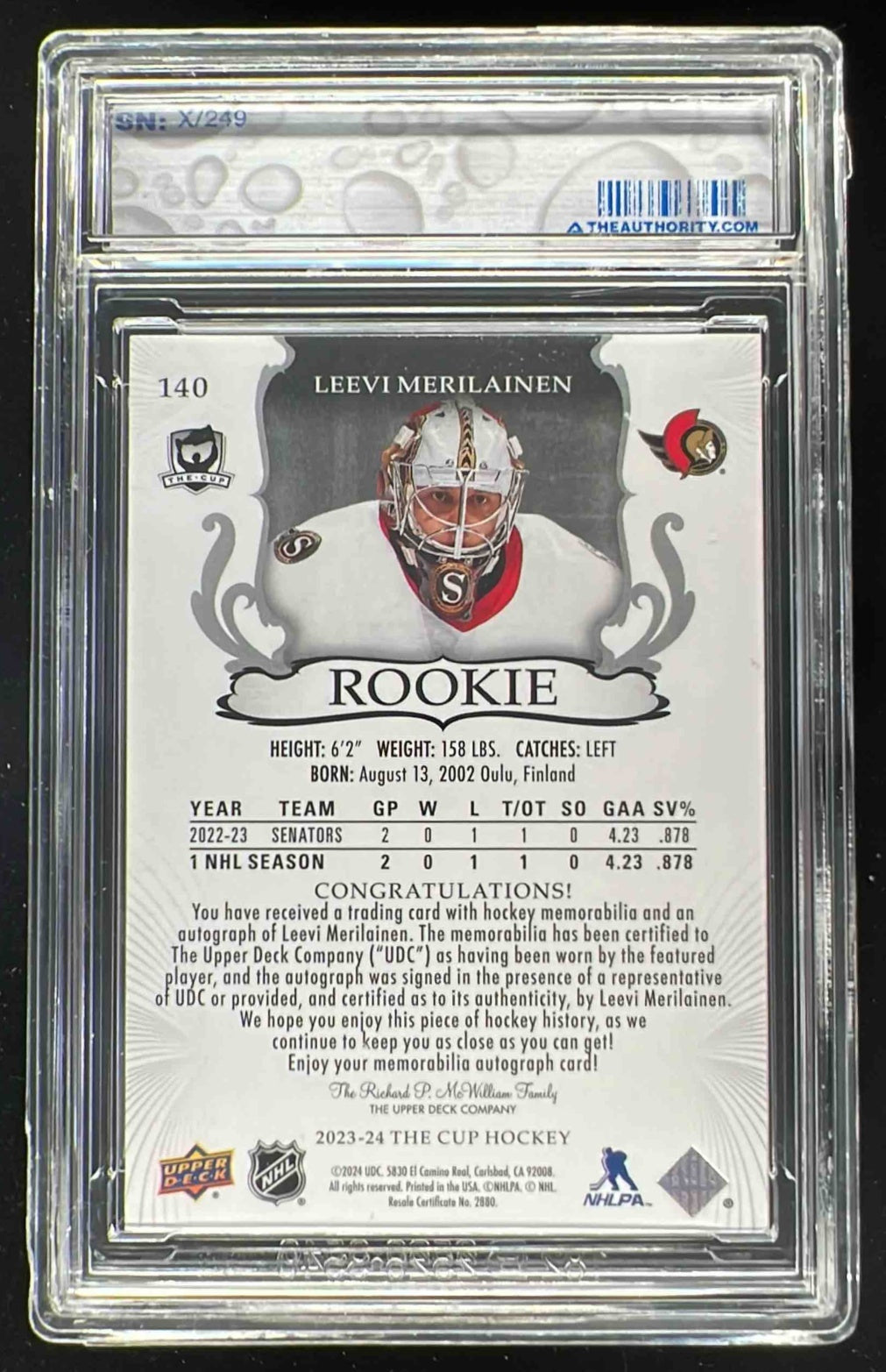 2023-24 The Cup #140 Leevi Merilainen Rookie Patch Auto Autograph Auto /249