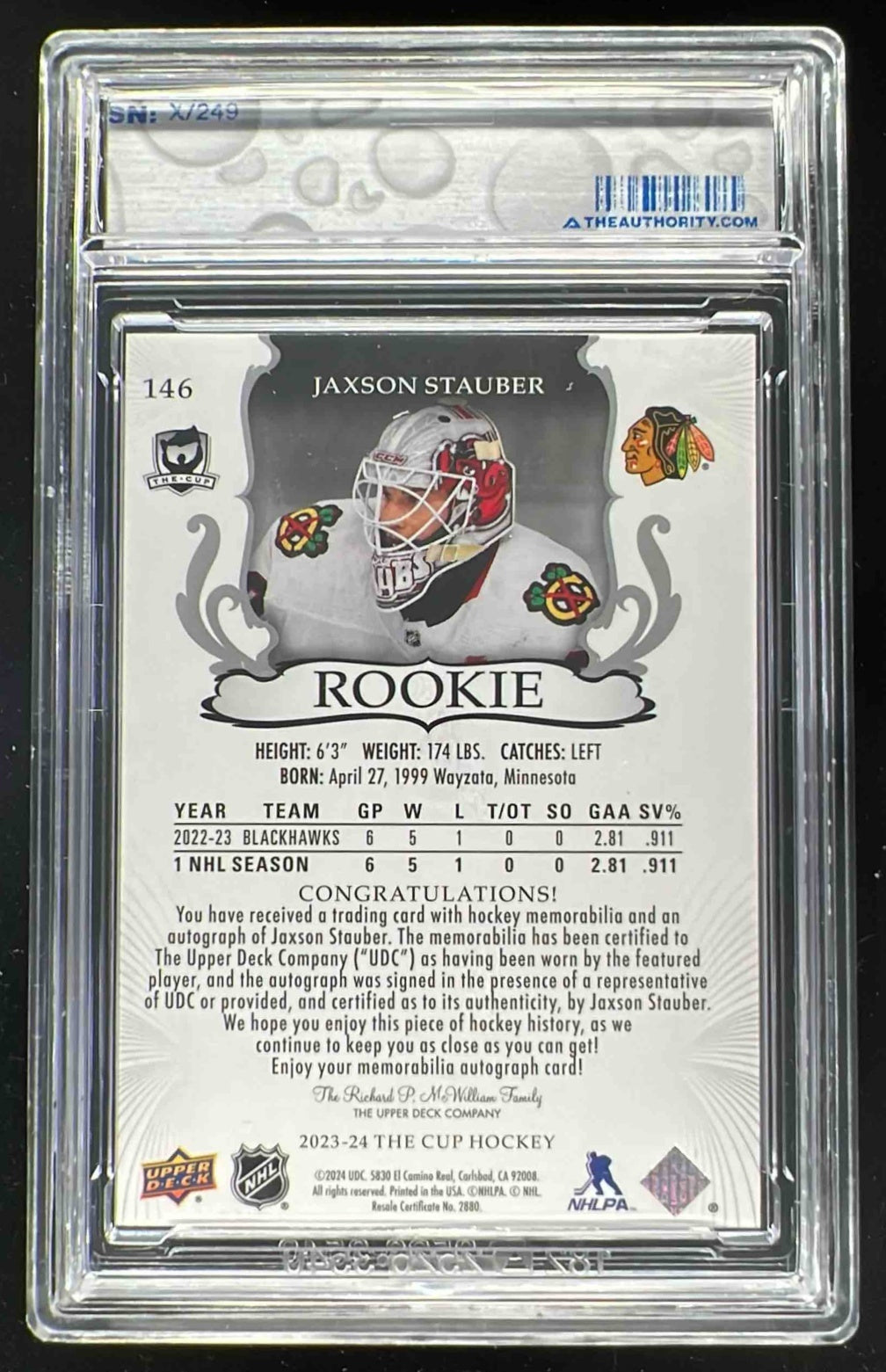 2023-24 The Cup #146 Jaxson Stauber Rookie Patch Auto Autograph Auto /249