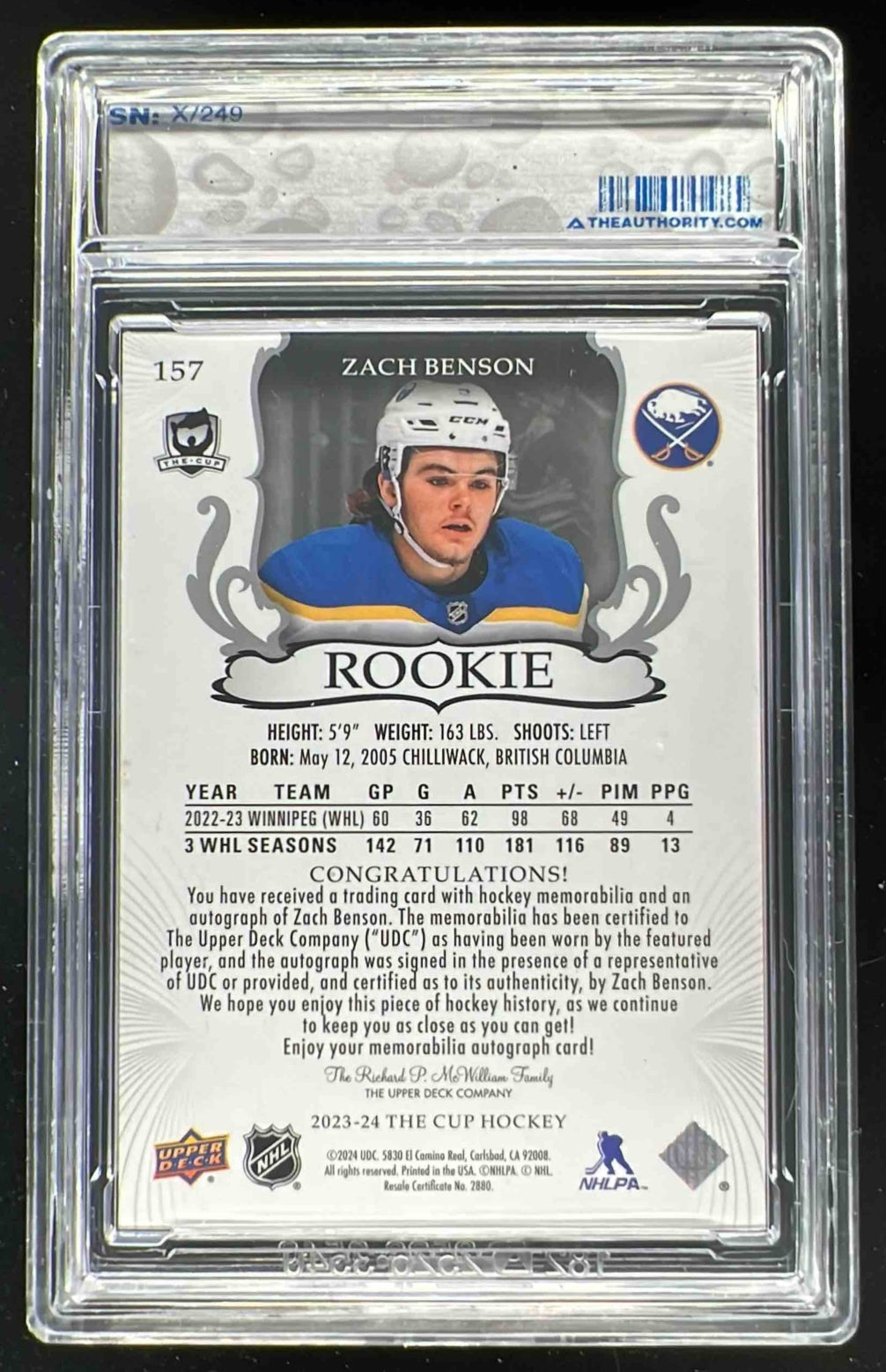 2023-24 The Cup #157 Zach Benson Rookie Patch Auto Autograph Auto /249