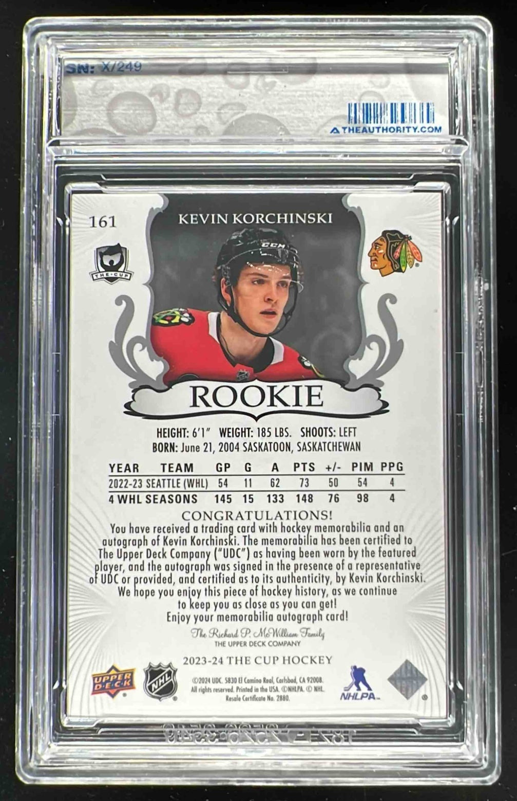 2023-24 The Cup #161 Kevin Korchinski Rookie Patch Auto Autograph Auto /249