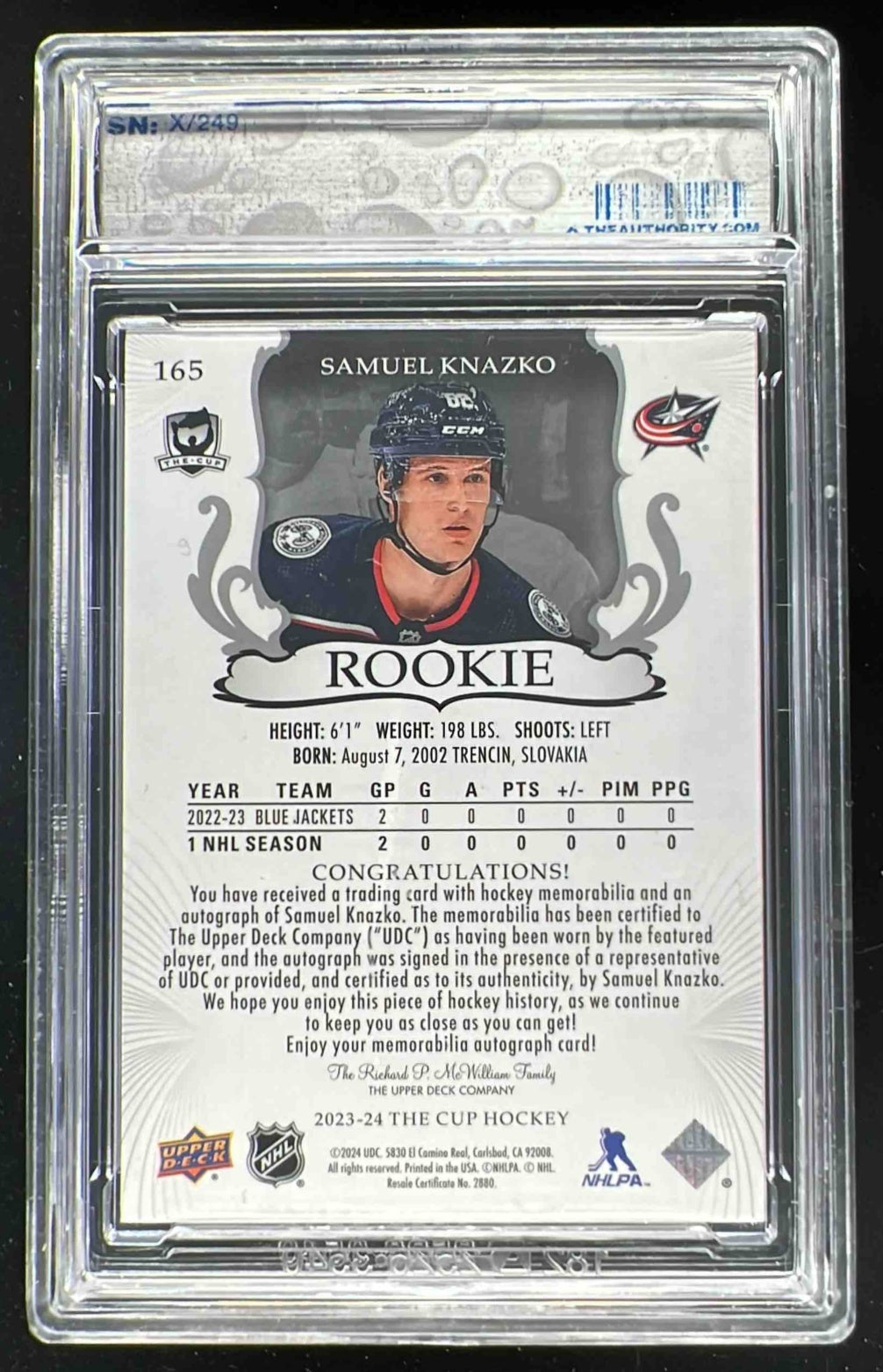 2023-24 The Cup #165 Samuel Knazko Rookie Patch Auto Autograph Auto /249