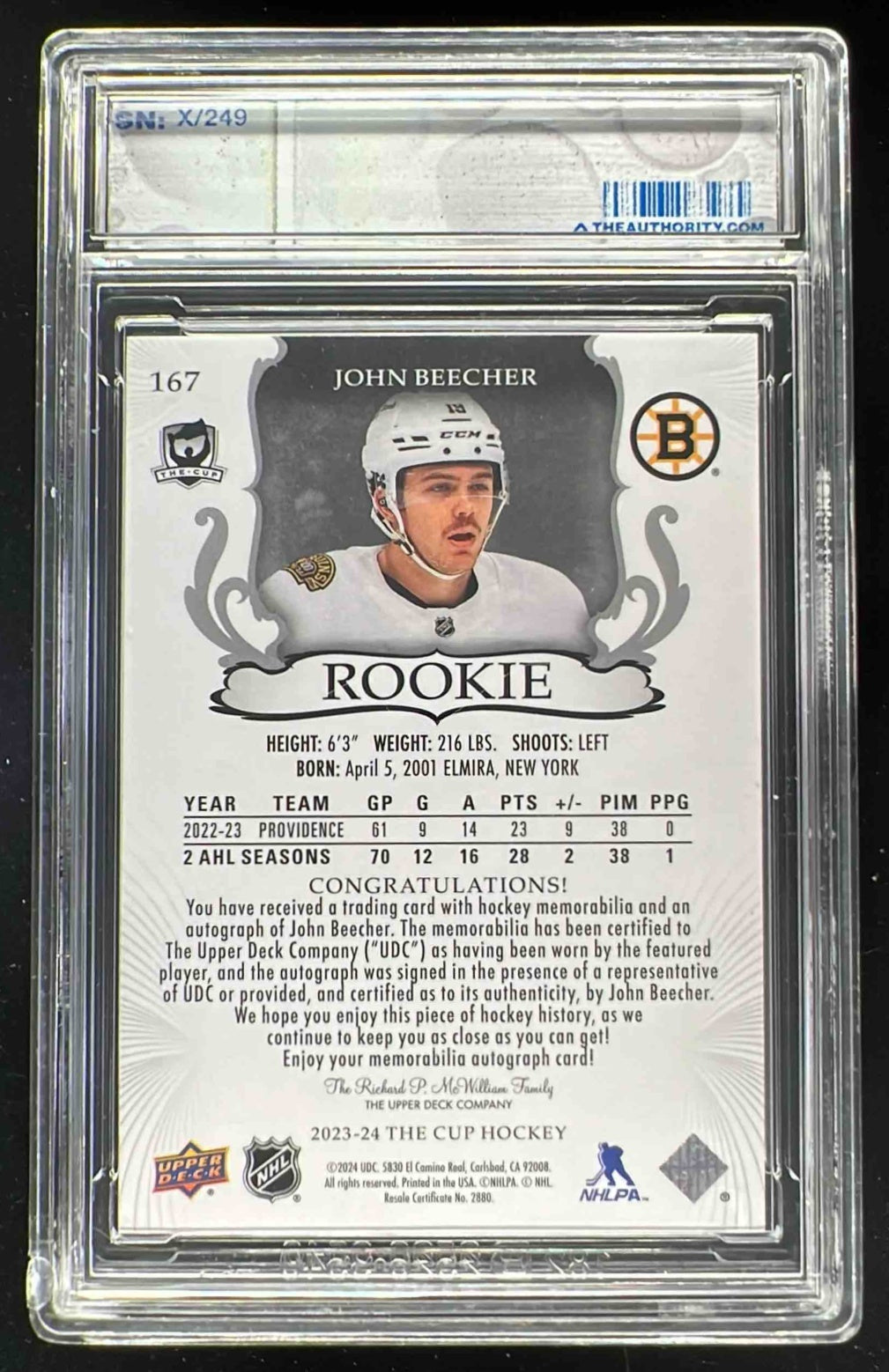 2023-24 The Cup #167 John Beecher Rookie Patch Auto Autograph Auto /249