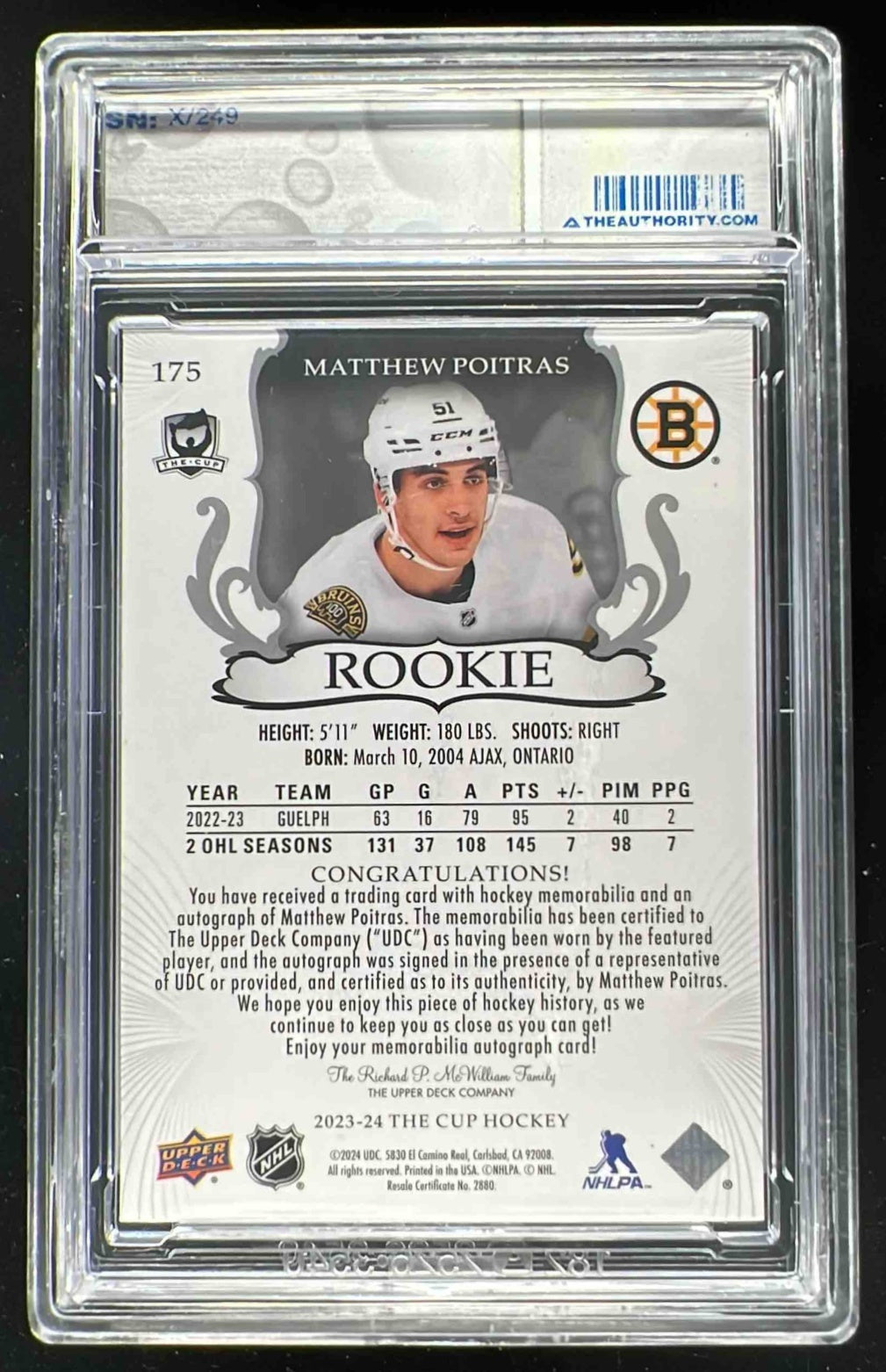 2023-24 The Cup #175 Matthew Poitras Rookie Patch Auto Autograph Auto /249