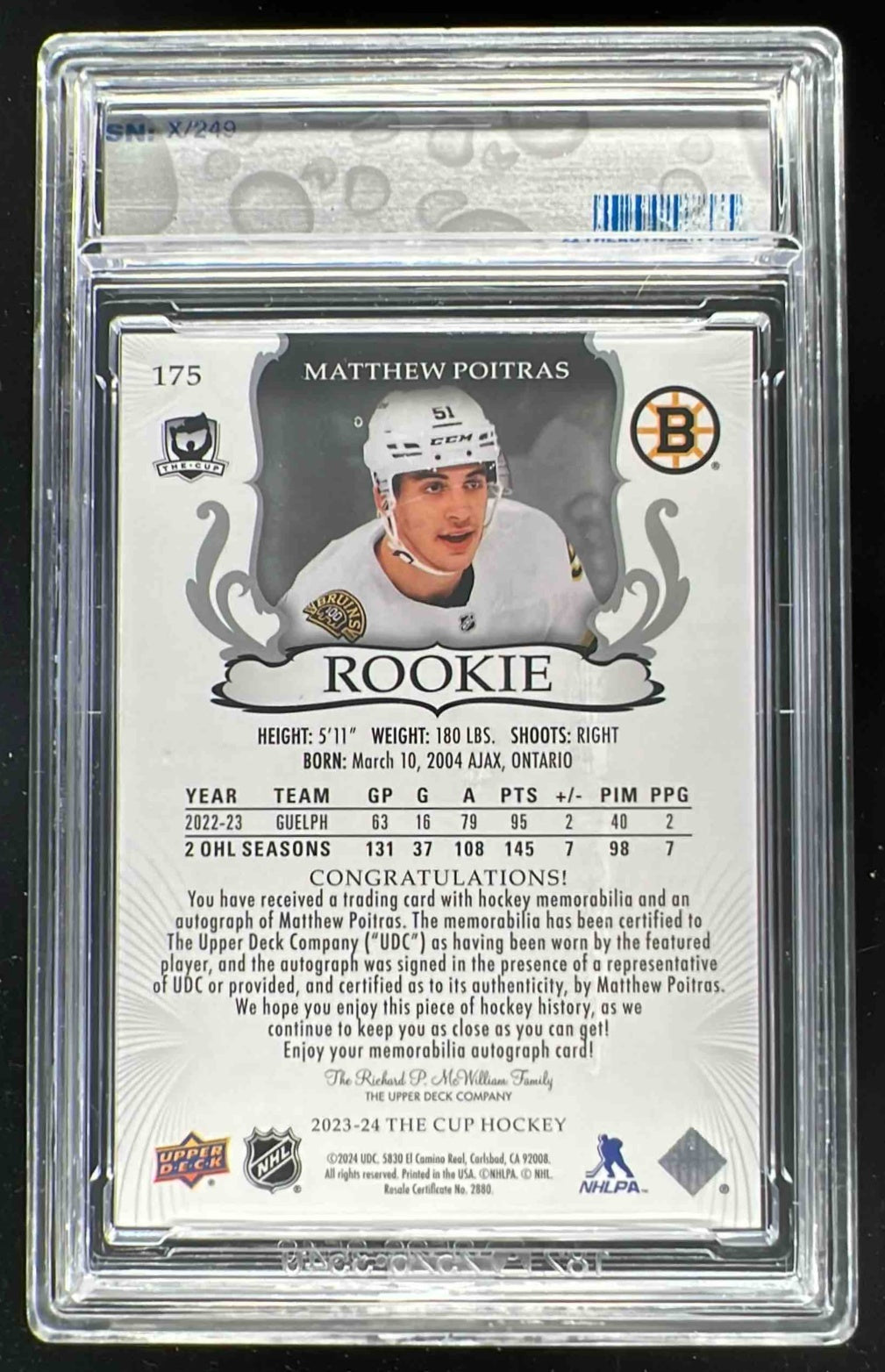 2023-24 The Cup #175 Matthew Poitras Rookie Patch Auto Autograph Auto /249
