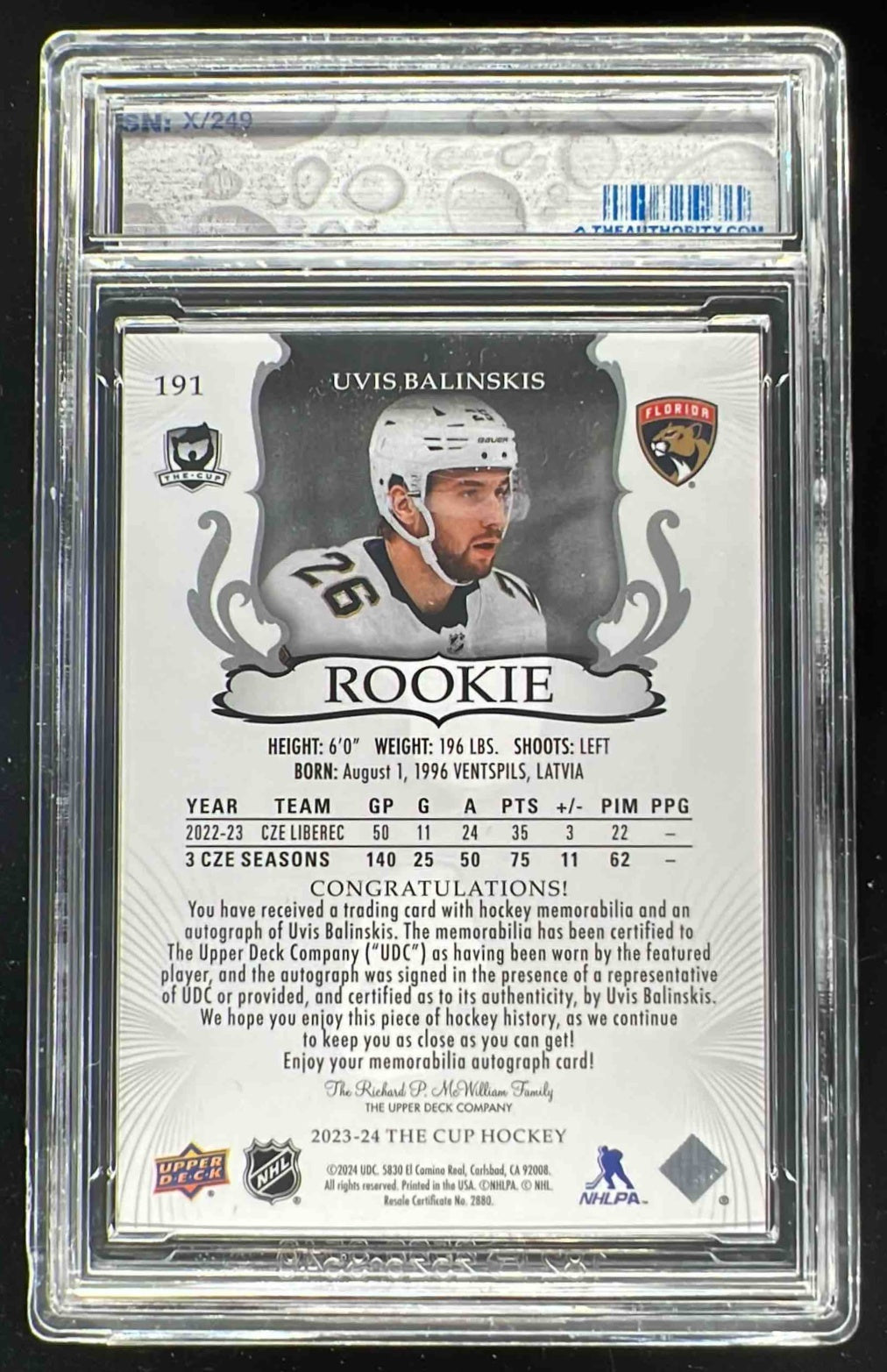 2023-24 The Cup #191 Uvis Balinskis Autograph RC Auto /249