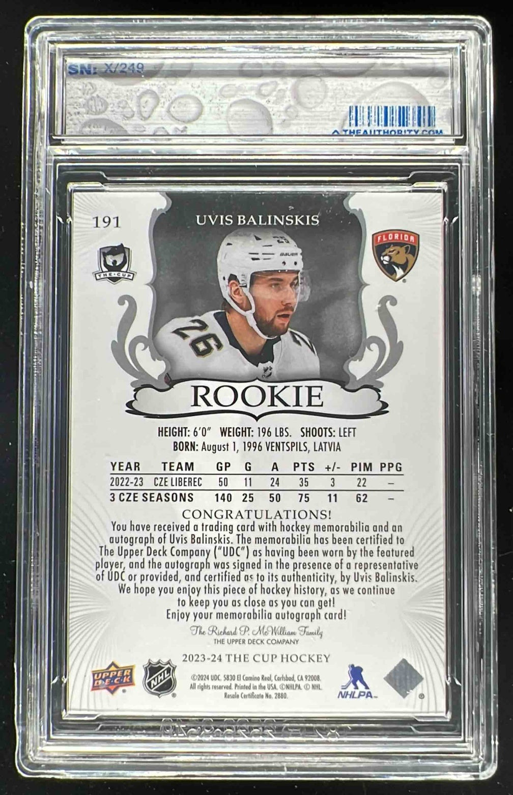 2023-24 The Cup #191 Uvis Balinskis Autograph RC Auto /249