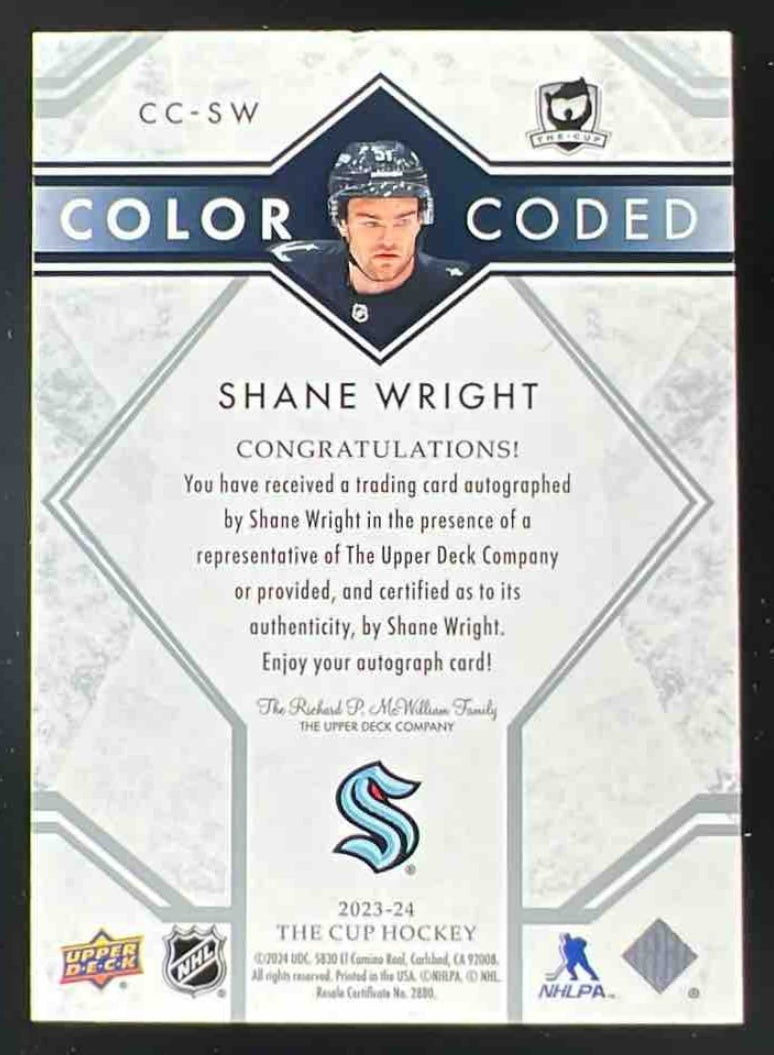 2023-24 The Cup Color Coded #CC-SW Shane Wright Autograph Auto