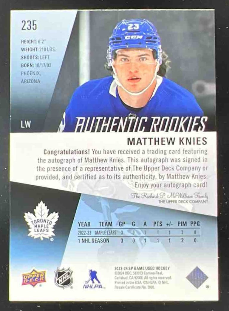 2023-24 Upper Deck SP Game Used Auto #235 Matthew Knies Autograph RC Auto