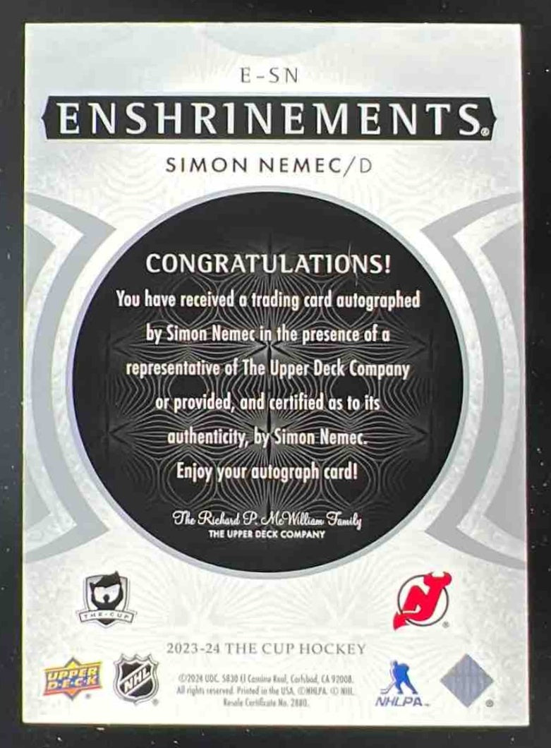 2023-24 The Cup Enshrinements #E-SN Simon Nemec Autograph Auto /99