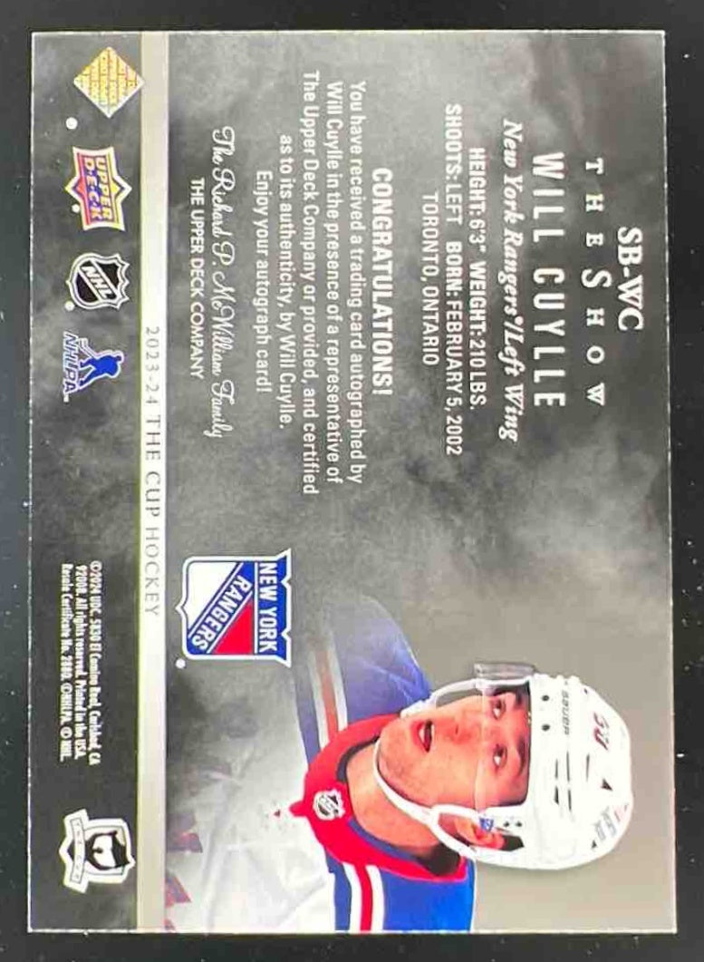2023-24 The Cup The Show Black Auto #SB-WC Will Cuylle Autograph Auto