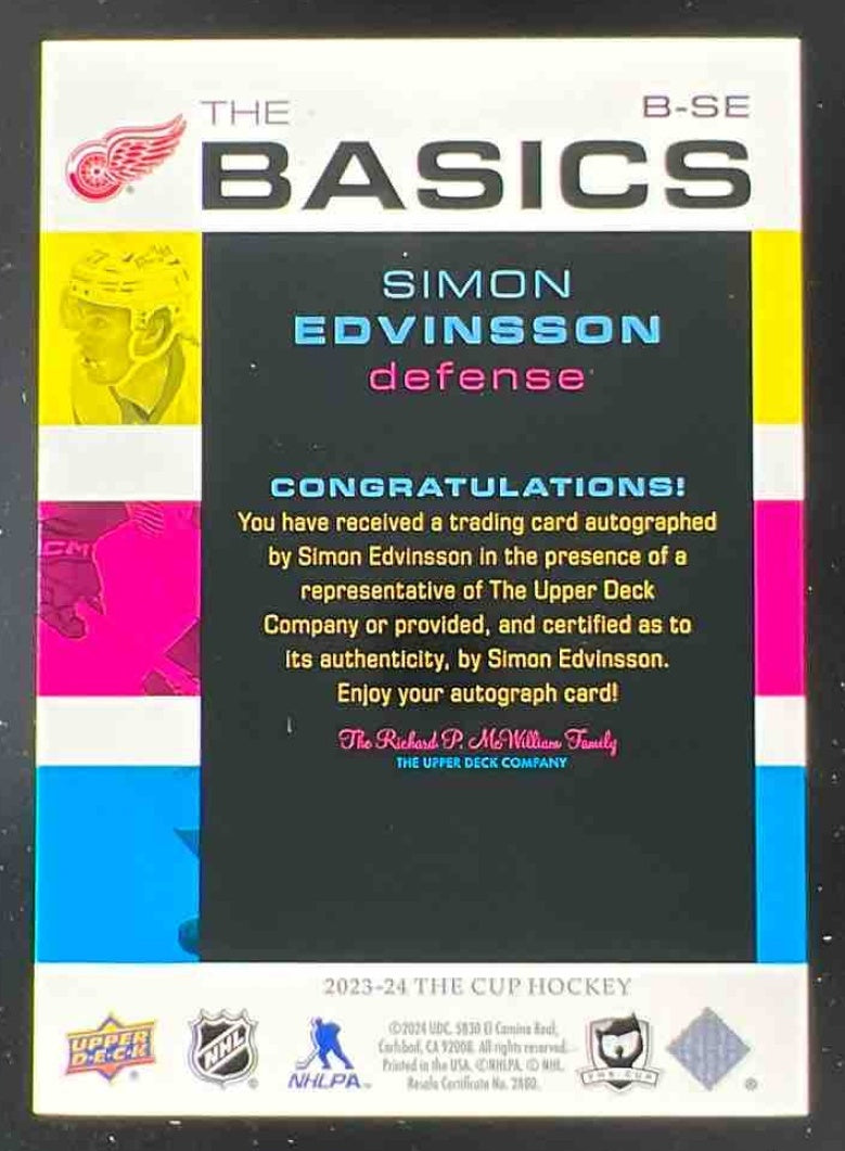 2023-24 The Cup The Basics Auto #B-SE Simon Edvinsson Autograph Auto