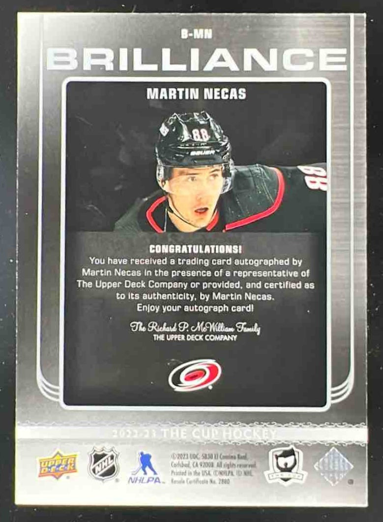 2022-23 The Cup Update Brilliance #B-MN Martin Necas Autograph Auto