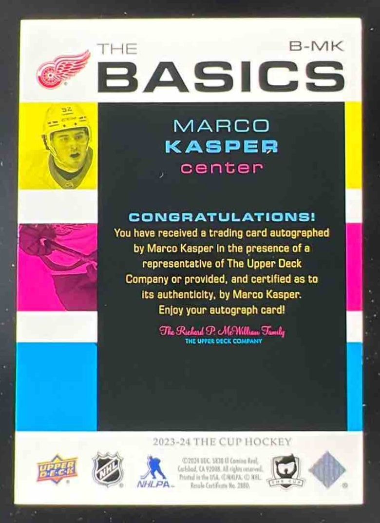 2023-24 The Cup The Basics Auto #B-MK Marco Kasper Autograph Auto