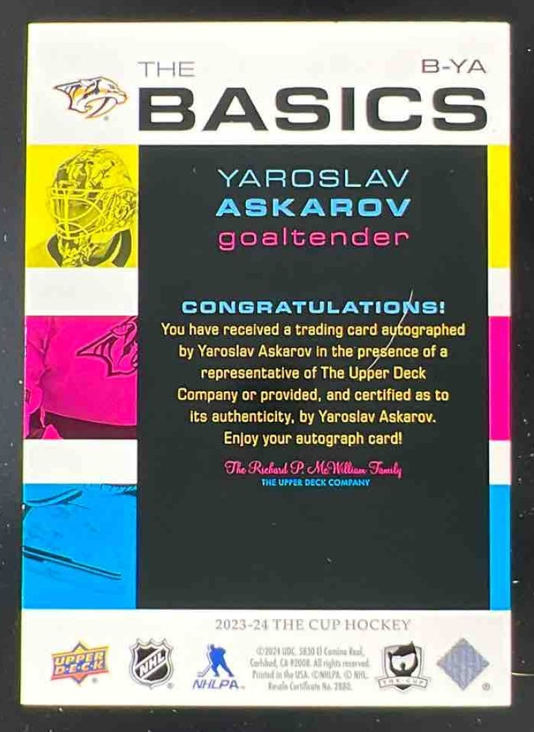 2023-24 The Cup The Basics Auto #B-YA Yaroslav Askarov Autograph Auto