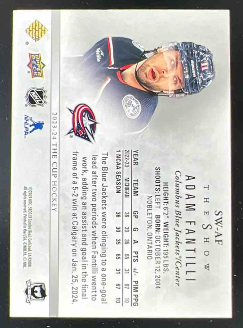 2023-24 The Cup The Show White #SW-AF Adam Fantilli RC /99