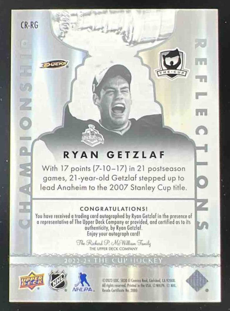 2022-23 Upper Deck The Cup Championship Reflections #CR-RG Ryan Getzlaf Auto /35