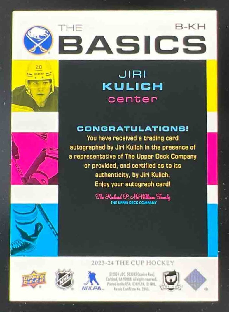 2023-24 The Cup The Basics Auto #B-KH Jiri Kulich Autograph Auto