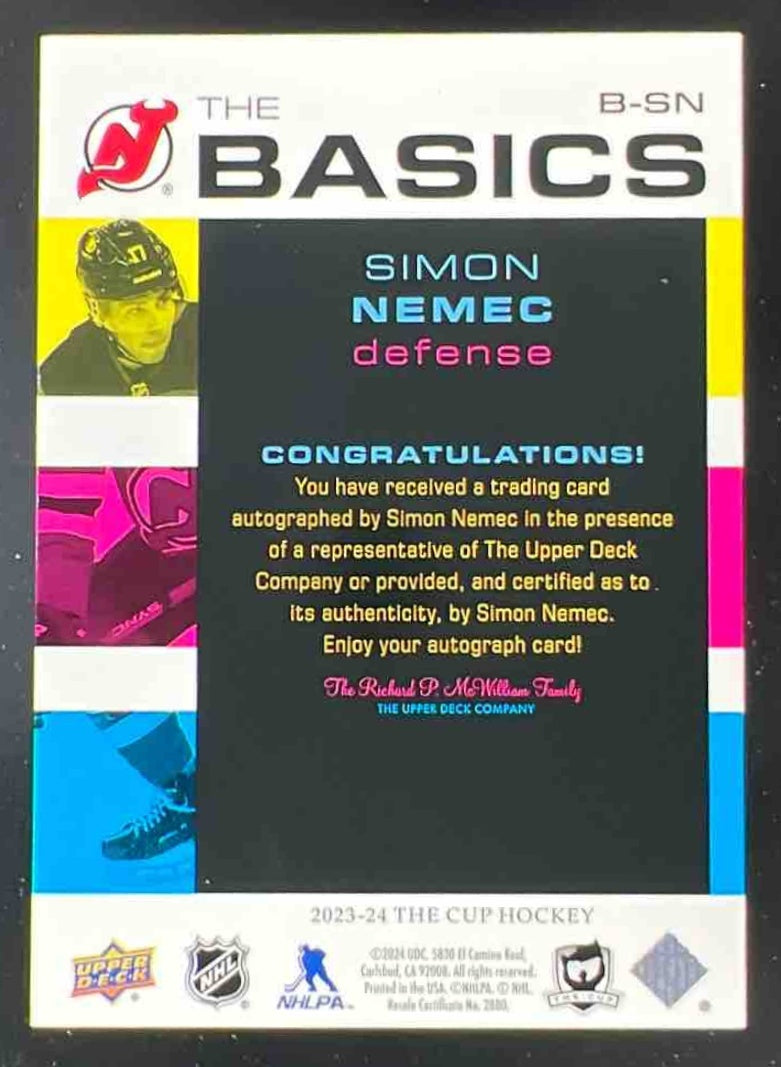 2023-24 The Cup The Basics Auto #B-SN Simon Nemec Autograph RC Auto