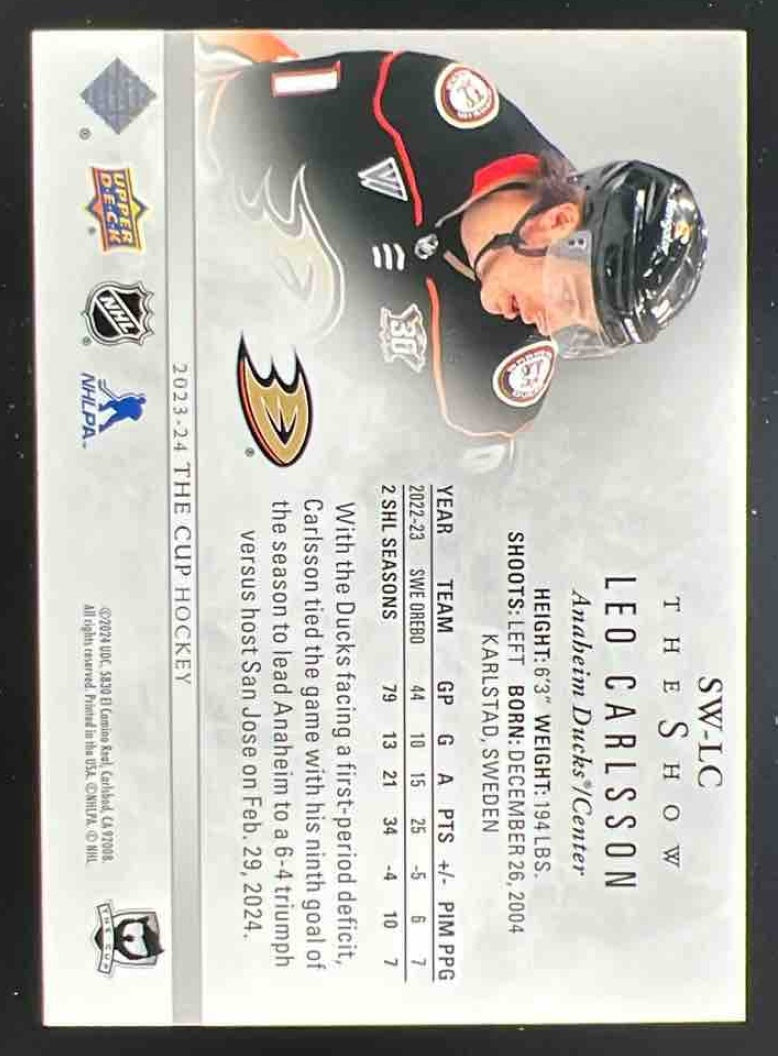 2023-24 The Cup The Show White #SW-LC Leo Carlsson /99