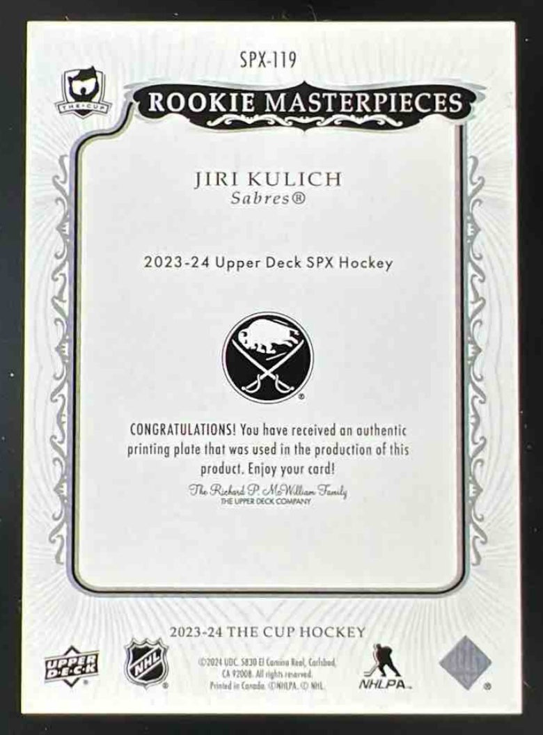 2023-24 The Cup Rookie Masterpieces Printing Plate Yellow Jiri Kulich 1/1