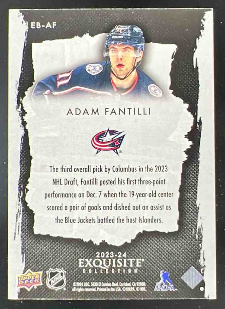 2023-24 Exquisite Collection Black #EB-AF Adam Fantilli /99