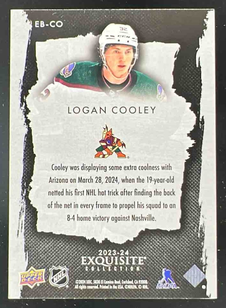 2023-24 Exquisite Collection Black #EB-CO Logan Cooley /99