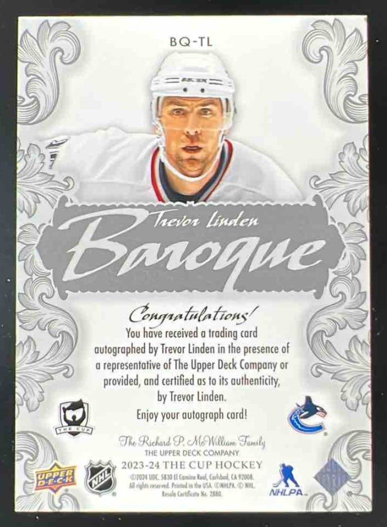 2023-24 The Cup Baroque #BQ-TL Trevor Linden Autograph Auto