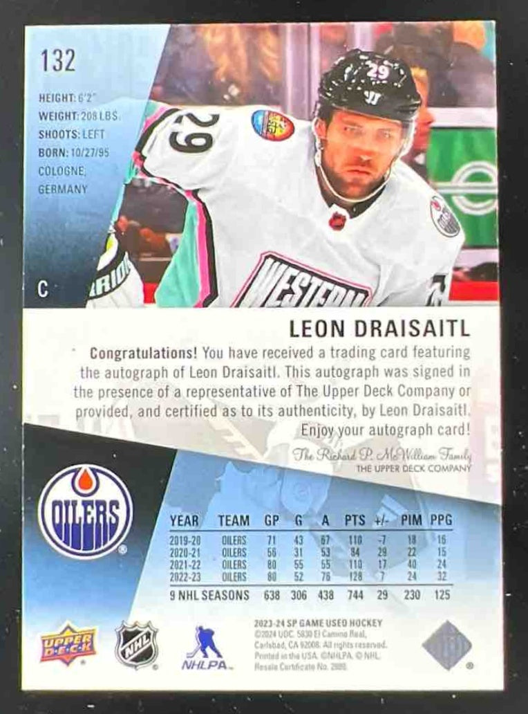 2023-24 Upper Deck SP Game Used Auto #132 Leon Draisaitl Autograph All-Star Auto
