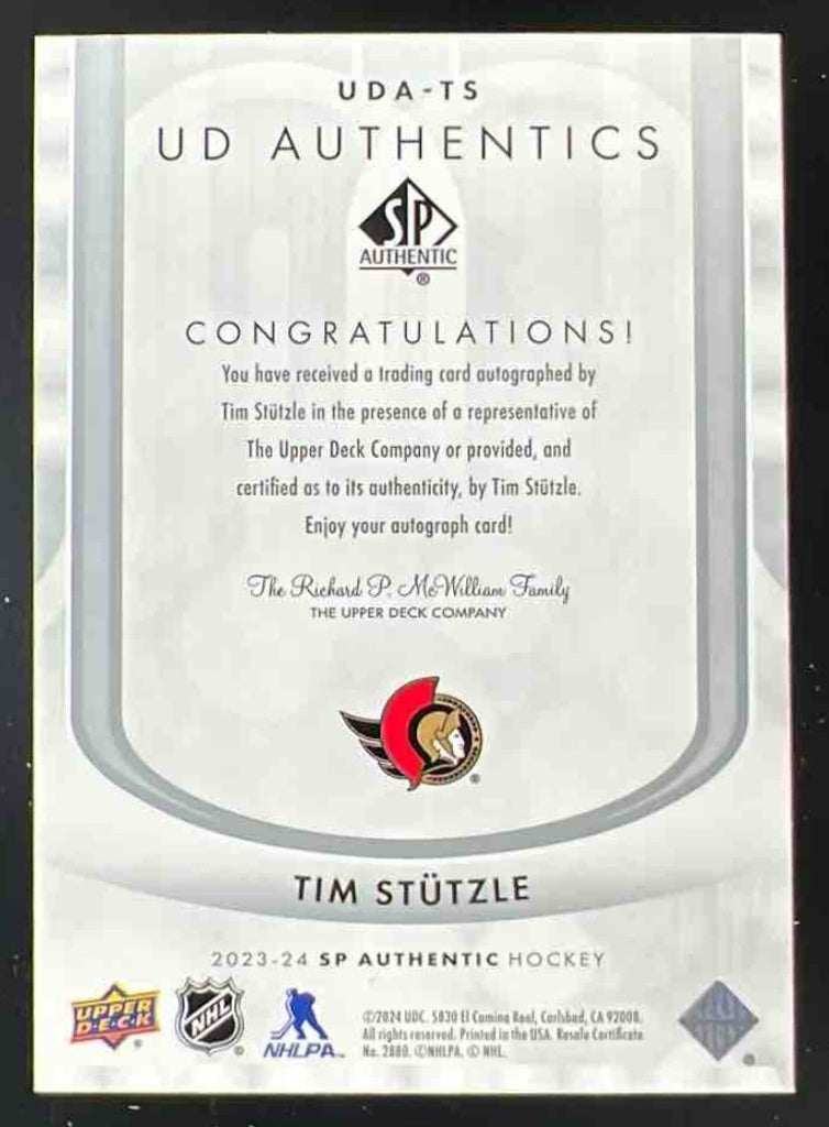 2023-24 SP Authentic UD Authentics Autographs #UDA-TS Tim Stutzle Autograph Auto