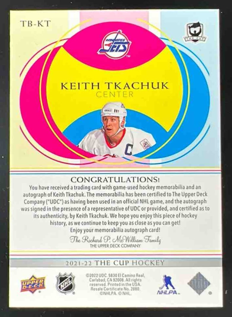 2021-22 The Cup The Basics Auto Patch #TB-KT Keith Tkachuk Autograph Auto /15