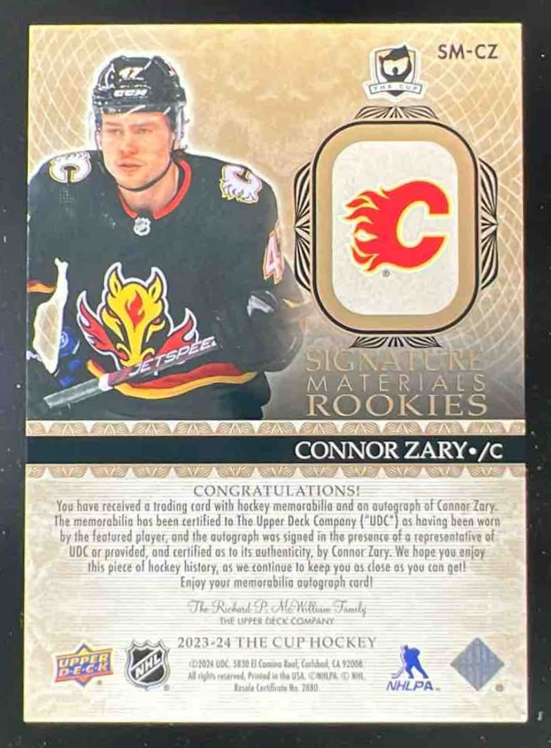 2023-24 The Cup Signature Materials #SM-CZ Connor Zary Autograph Auto /99