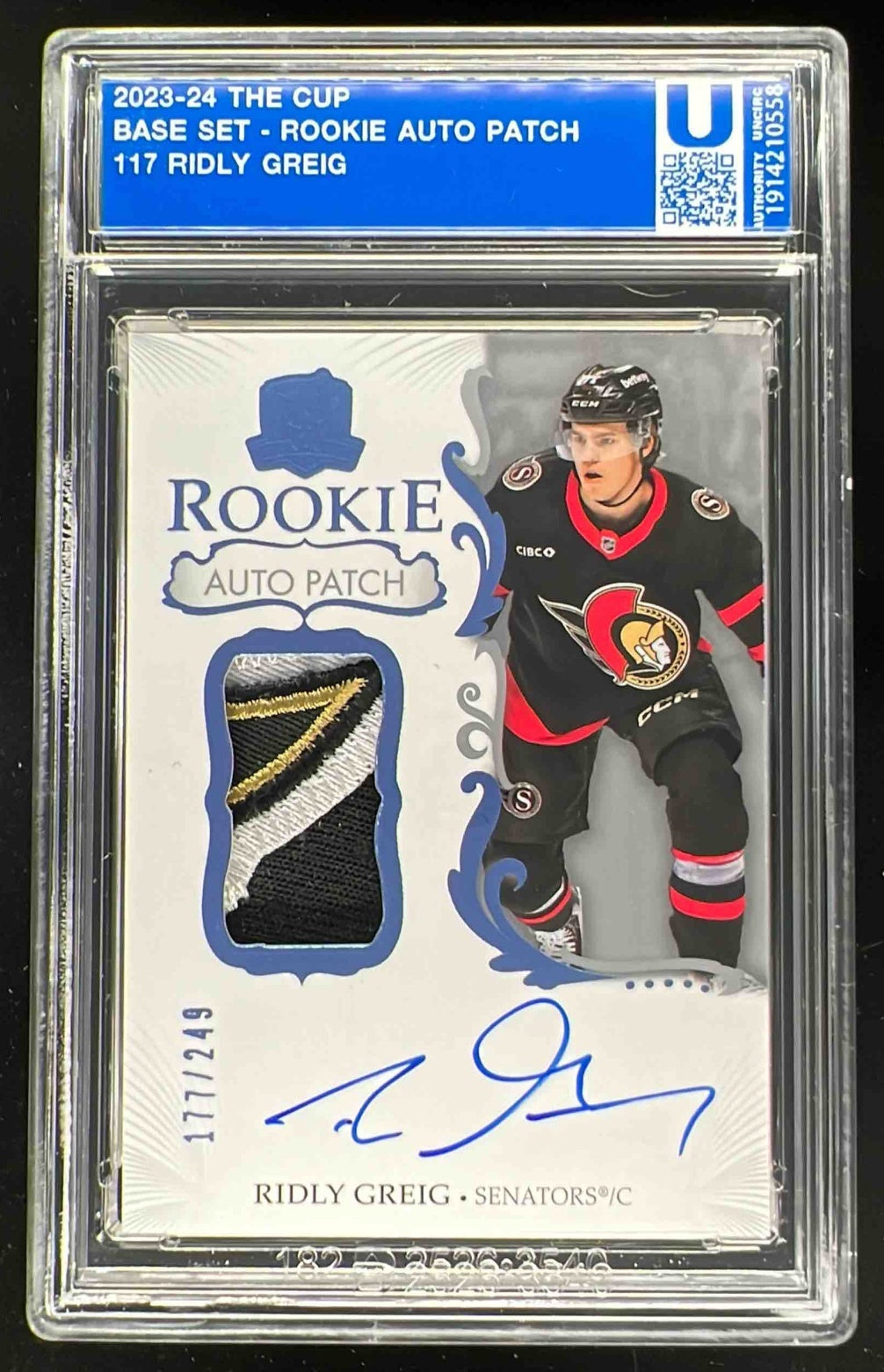 2023-24 The Cup #117 Ridly Greig Rookie Patch Auto Autograph Auto /249