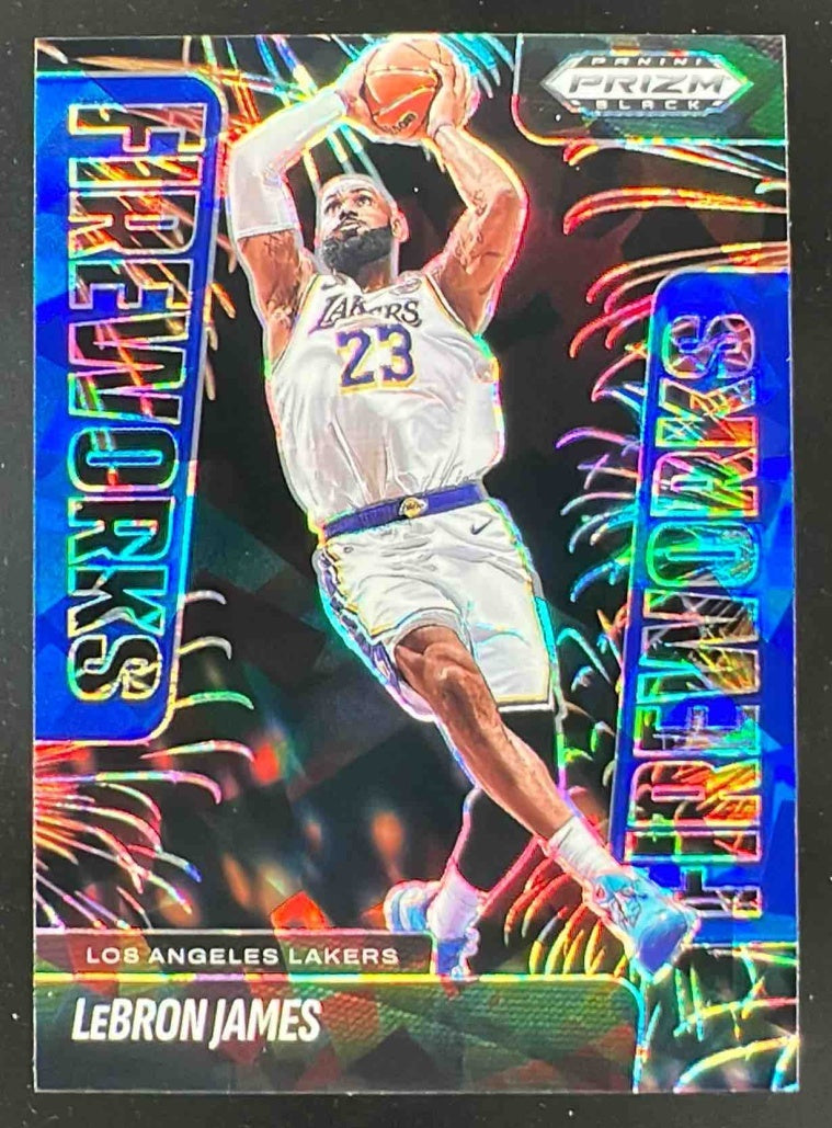 2024-25 Panini Prizm Black Fireworks Blue Ice Prizms #3 LeBron James /125