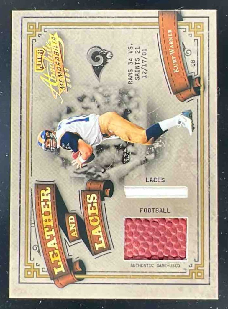 2003 Playoff Absolute Memorabilia Leather and Laces Combo's Kurt Warner /50