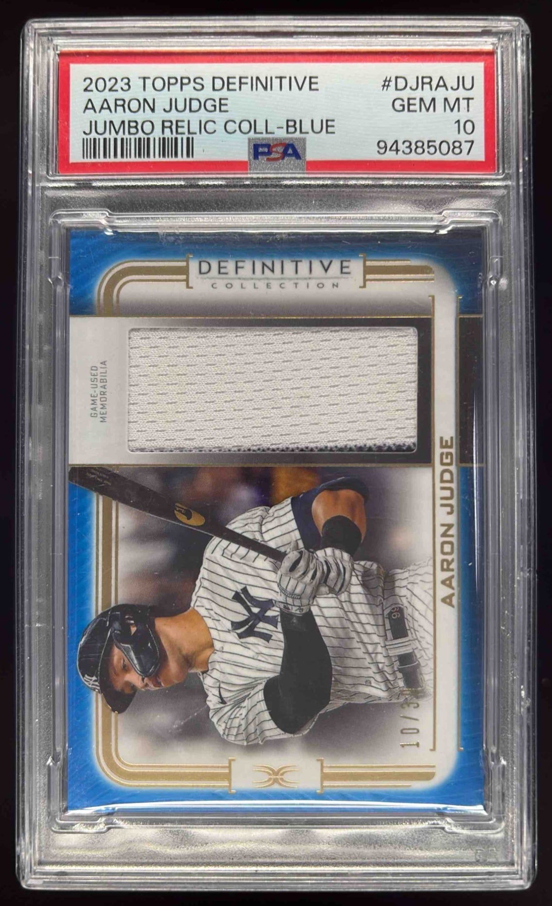 2023 Topps Definitive Jumbo Relic Collection Blue #DJRAJU Aaron Judge /30 PSA 10