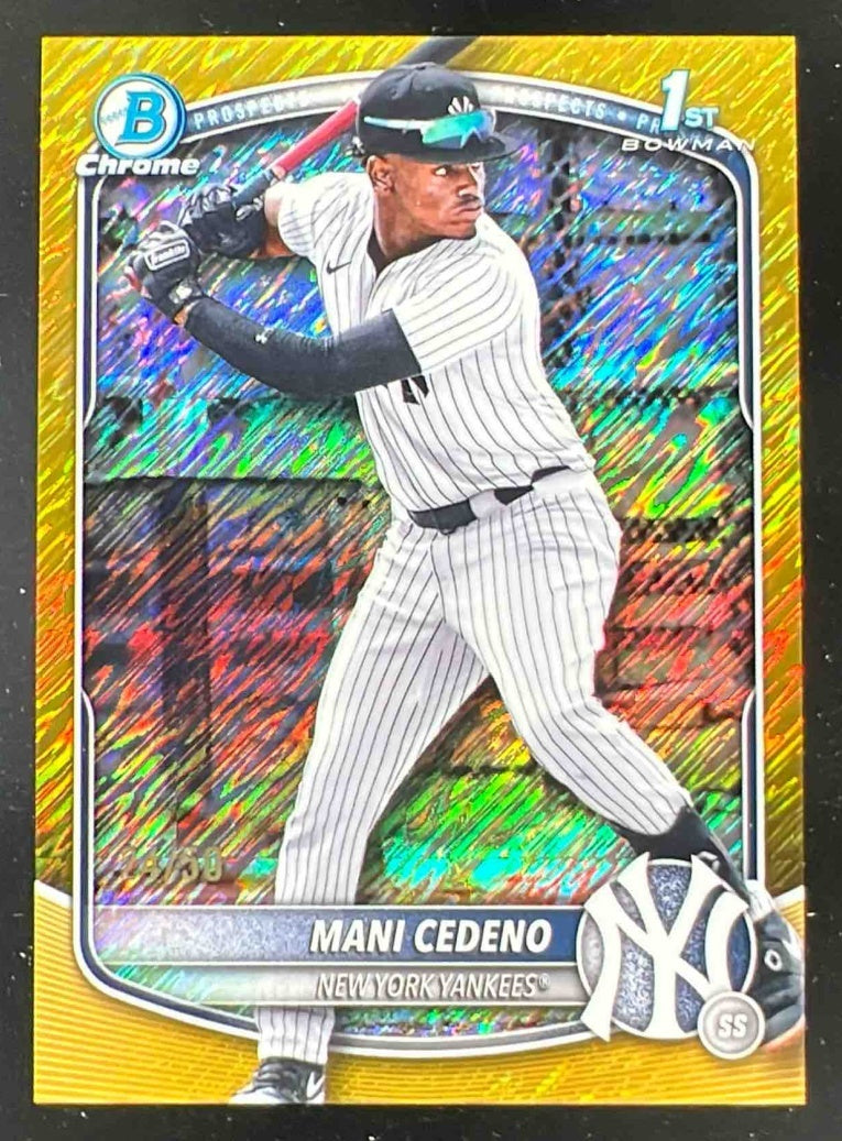 2025 Bowman Chrome Prospects Gold Shimmer Refractor #BCP-199 Mani Cedeno RC /50