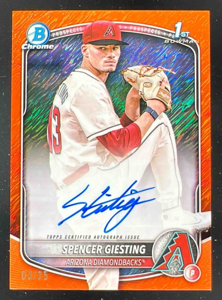 2025 Bowman Chrome Orange Shimmer Refractor #CPA-SG Spencer Giesting RC Auto /25