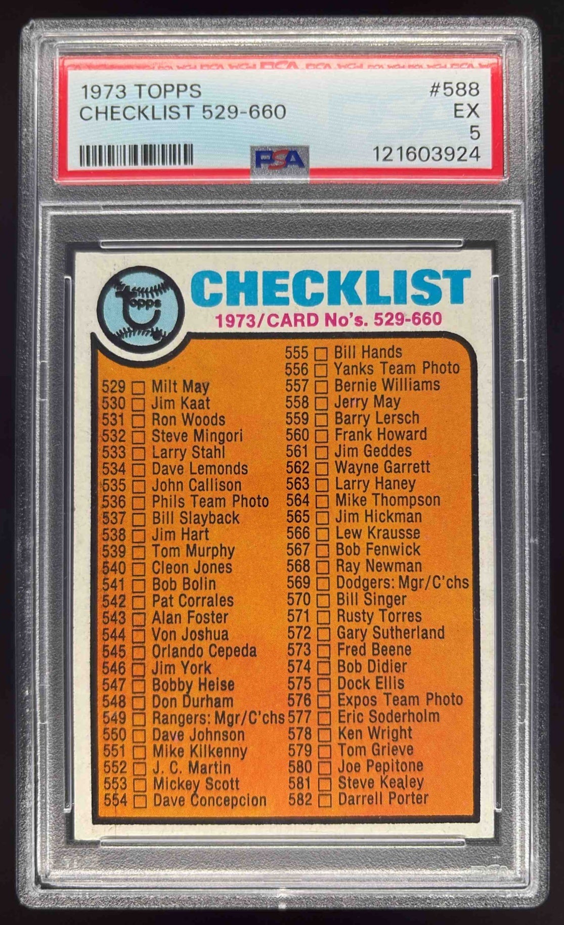 1973 Topps #588 Checklist: 529-660 PSA 5