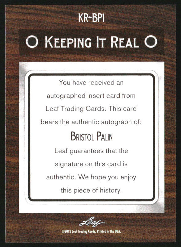 2011 Leaf Pop Century Keeping It Real Autographs Silver Bristol Palin Auto /10