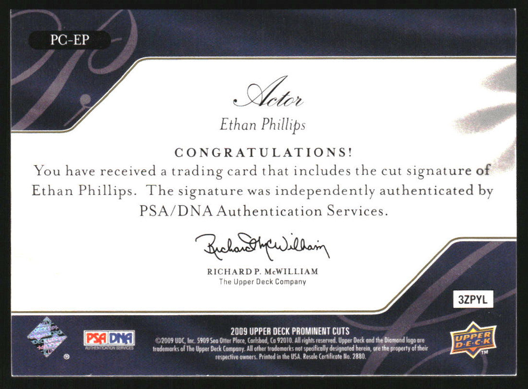 2009 Upper Deck Prominent Cuts Cut Signatures #PCEP Ethan Phillips Auto /17