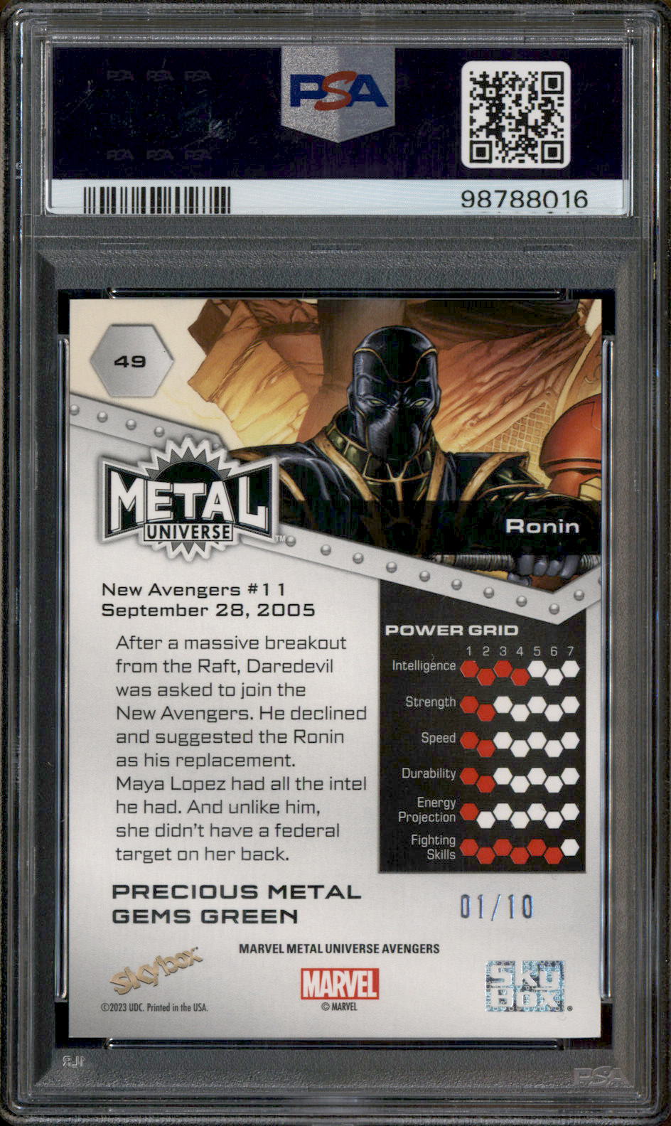2024 Skybox Metal Universe Avengers Green Precious Metal Gems Ronin /10 PSA 7
