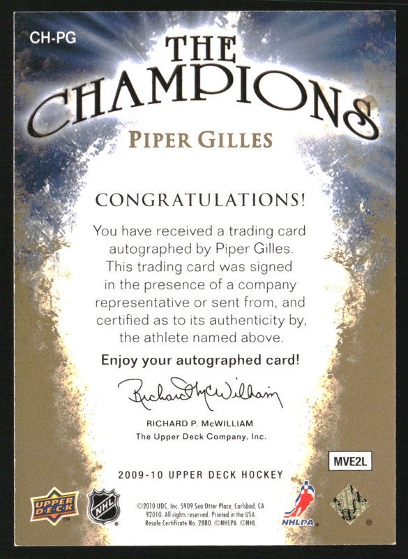 2009-10 Upper Deck The Champions Autographs Gold #CHPG Piper Gilles Auto