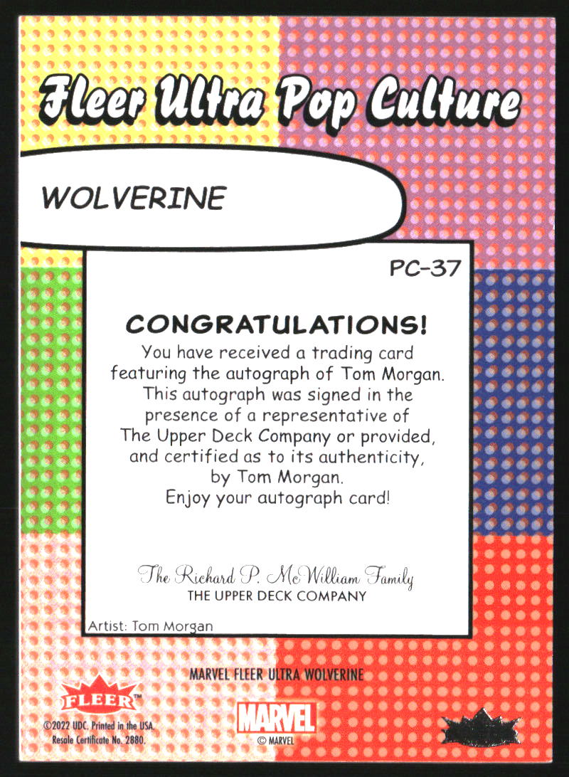 2024 Fleer Ultra Wolverine Pop Culture Artist Autographs Tom Morgan Auto /40