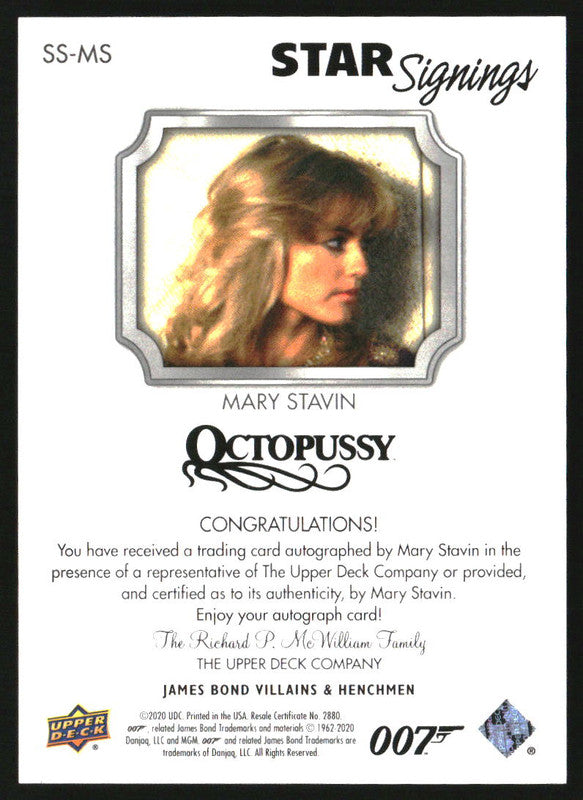 2021 Upper Deck James Bond Villains and Henchmen Star Signings Mary Stavin Auto